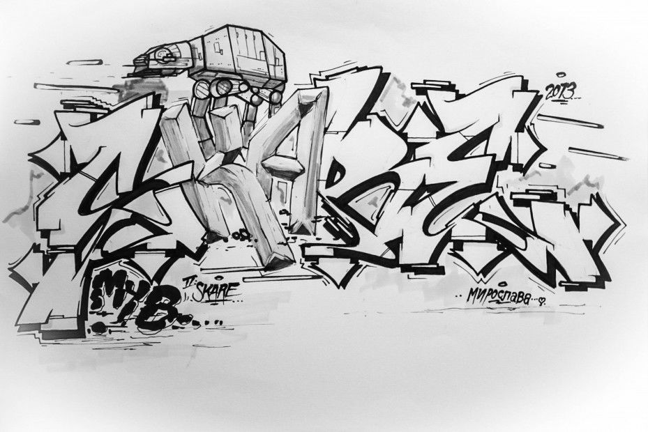 Graffiti Sketch in Linz - Photo by Hoek143 - hoek, ukraine, myb (2013)